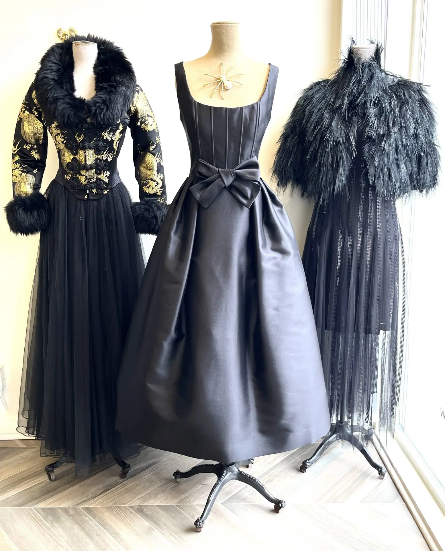 Happy Halloween! We’ve gone full corset, tulle, fur and plumage mode here with a sprinkling of spider on top for that vamp vibe. Have a spooktacular weekend kittens. L~1990’s brocade corset jacket with shearling trim, size S-M, $795. 1990’s tulle ball skirt with sequin lining, size 0-2, $795. C~Audrey & Brooks black corset gown, size […]