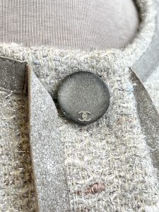 L~Chanel 1999 tweed jacket with leather ties, size 16, $1995. Chanel 1999 3/4 length mesh skirt, size 4-6, now on SALE $895.