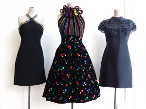 This week we are having a focus on necklines, ones that dazzle, glitter and amaze. Check out the centre beauty, doesn’t this custom Arnold Scaasi have a genius collar? We think it’s film reel like qualities would look great on the red carpet to a premier this week, don’t you?