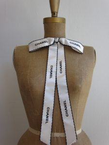Chanel black quilted satin headband (for gym class, of course). Elastisized to fit all. Band width is 2 3/4″.