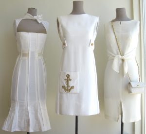 This post is definitely garden party approved! Just grab pair of wedges (to avoid aerating your host’s lawn. Unless it needs it, then go for heels(?)) and you’re off to the races. Both the left (Sold) and right dresses are from the 1930’s & are cut on the bias. This gives them some fluidity, so they are both a general size small. Fast forward 80+ years to the centre silk dress, by Dries Van Noten. This contemporary boho frock is a size 6. Deco glass flapper necklace sold separately.