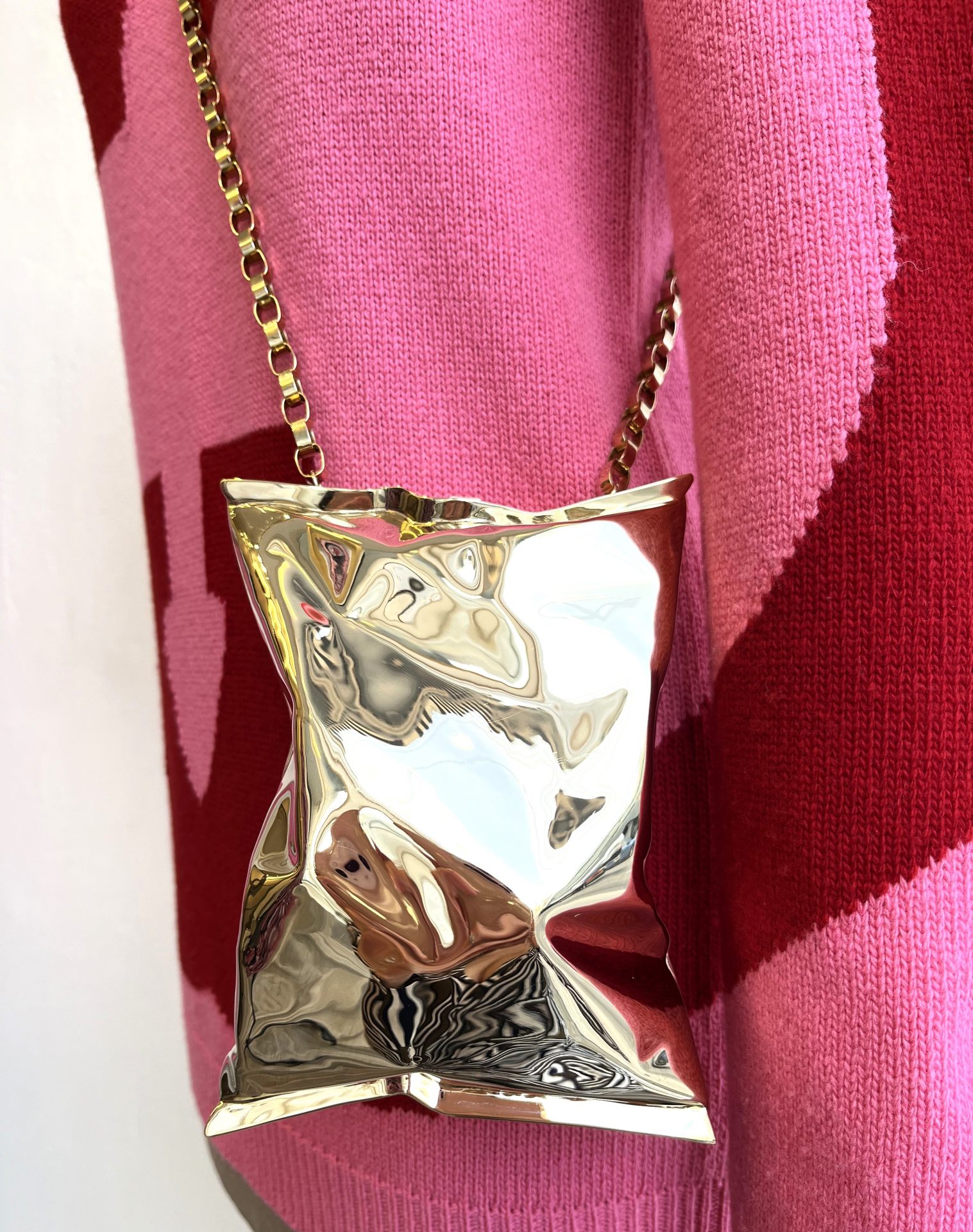 R~Gucci knit sweater/tunic, size S-M, $895. Anya Hindmarch crisp bag, $1,295.