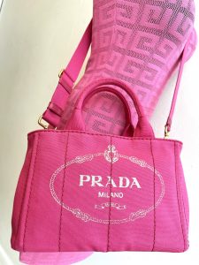 L~Givenchy logo knit mini dress, size S, $795. Prada canvas bag, $895.