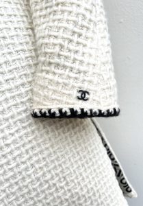 R~Chanel 2000 cream wool tweed coat with printed ‘COCO’ silk lining, size M, $3,995.