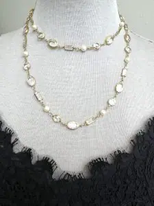 C~Etro cream silk long bell sleeve dress with signature paisley print, size 6-8, $1,295. Brunello Cucinelli monili beaded loop link necklace, $975.