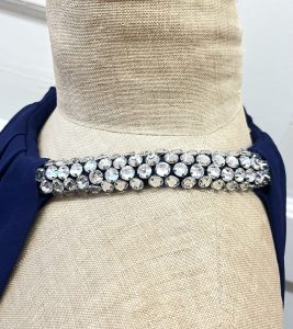 R~McQueen renaissance floral print wool knit dress, size XS-S, $695. 1960’s hammered link necklace, $275.