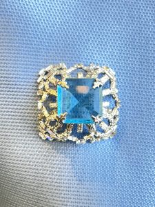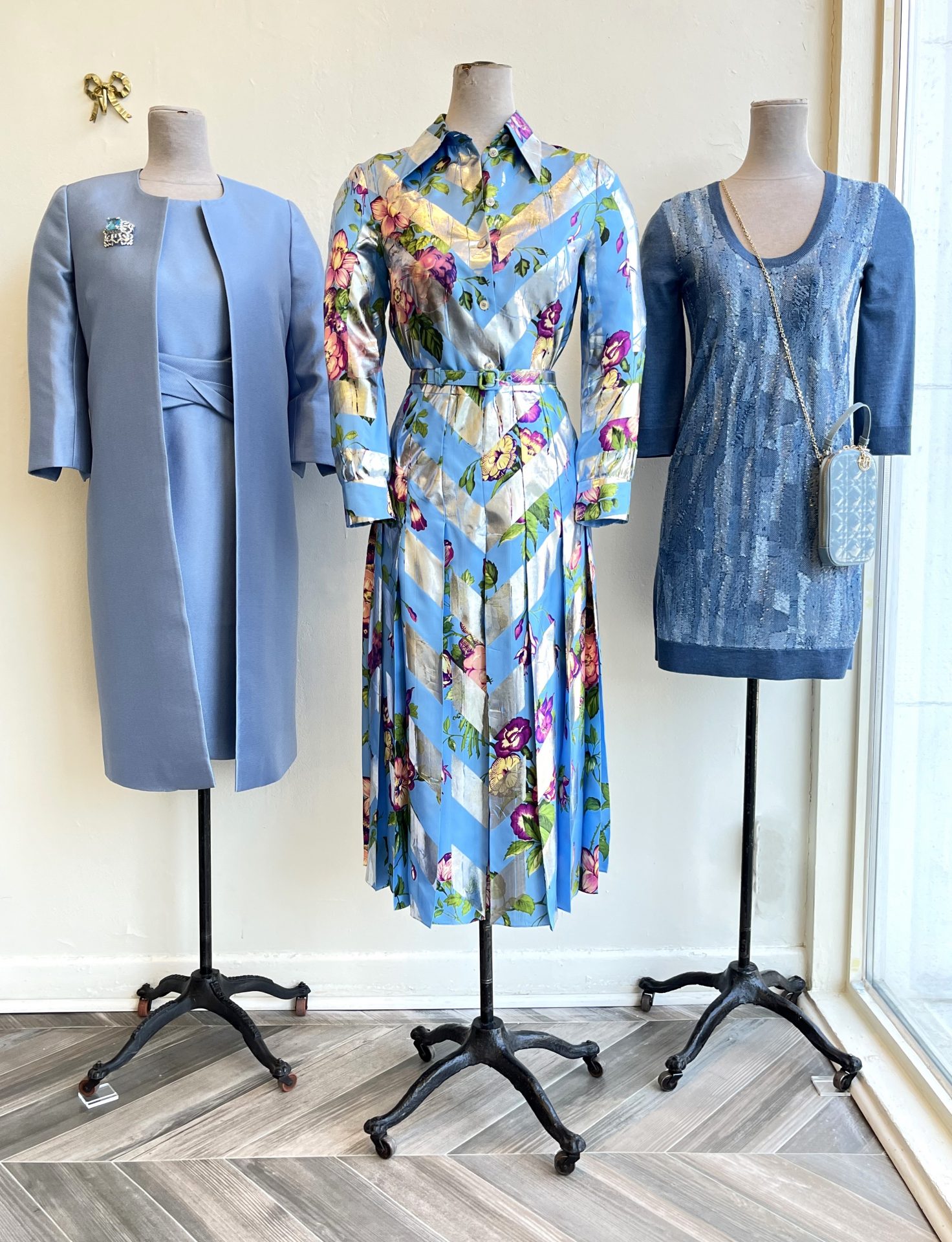L~Contemporary dress and jacket set, size 8, $995. 1960’s 3D brooch, $475.