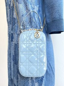 R~LV sequined knit dress, size S, $1,695. Dior Lady Dior tech holder, brand new, $1,149.