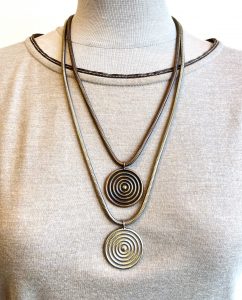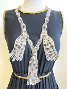 R~Brunello Cucinelli knit dress, size 8-10, $995. YSL 1970’s modernist necklace, $295.