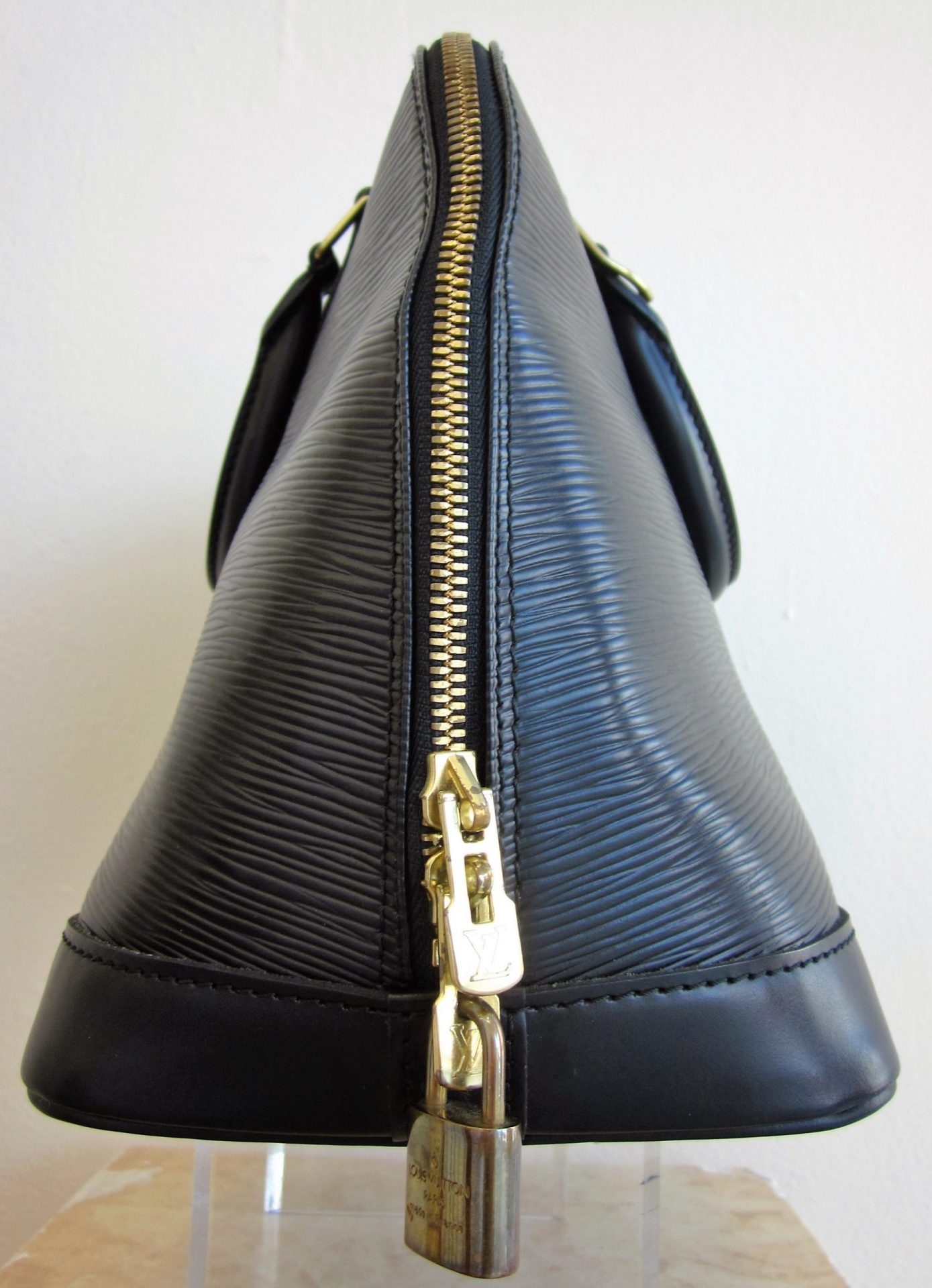 LV black epi Alma purse. Measures 12″ x 6½” x 9½”. Sold