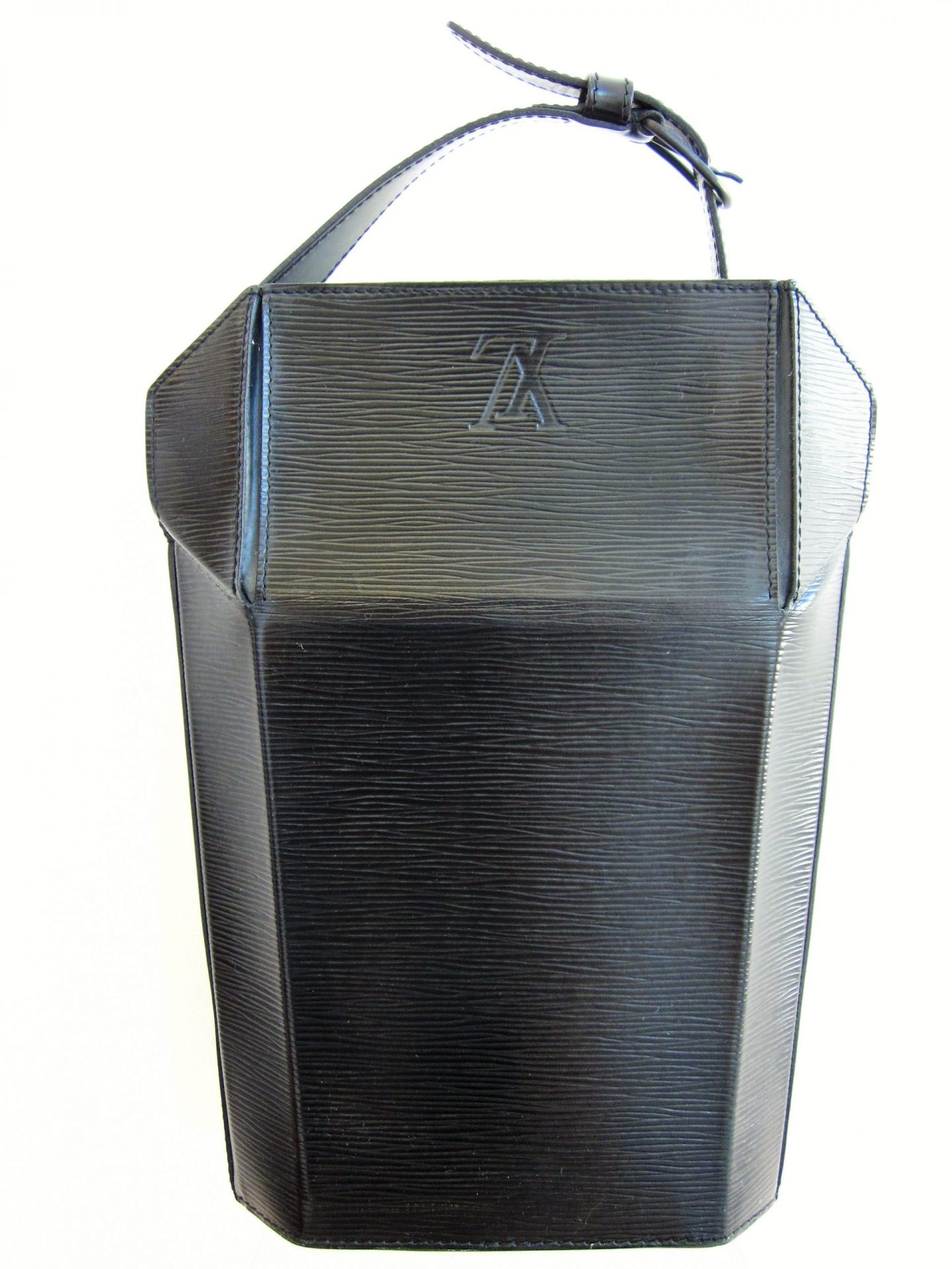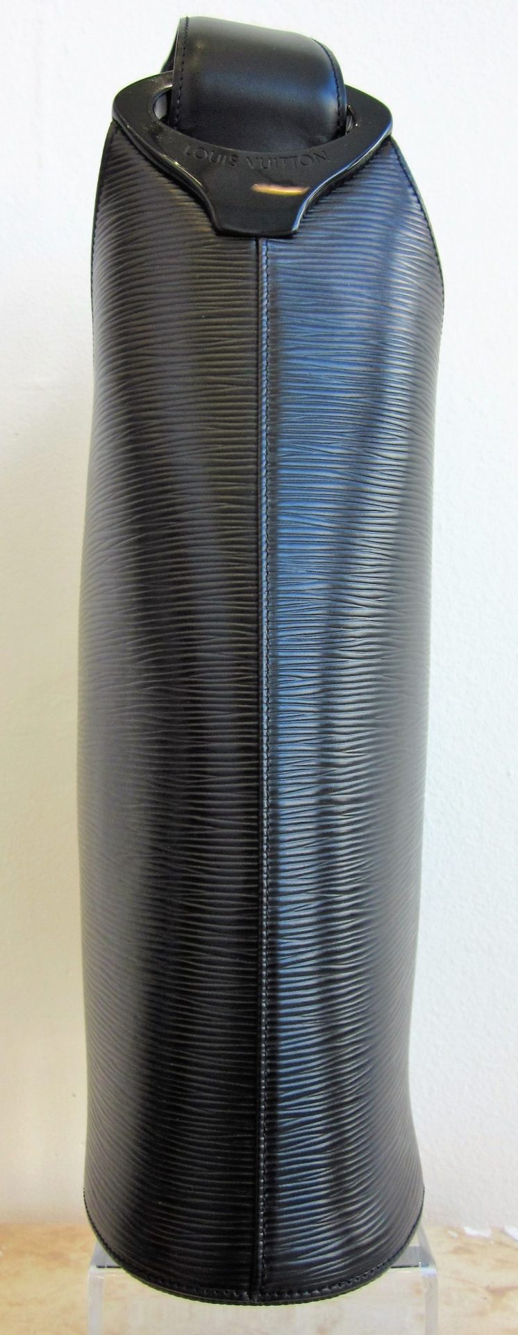 LV black epi Verseau. Measures 10″ x 3½” x 13½”. Sold