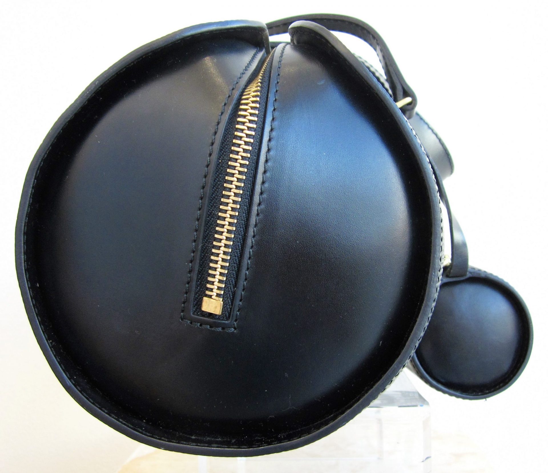 LV black epi Demi Lune coin purse. Measures 4½” x 1½” x 3¼”. Sold