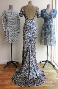Happy Easter and/or holiday weekend! I’m excited to show you this window, you see it’s been a long time coming. I’ve been dying to showcase that centre Rochas gown FOREVER but didn’t have the correct 3rd dress until that little Prada on the right floated on in. Good things come to those who wait, I guess… Check out the walk-away-factor™ on the Rochas, isn’t it deliciously dramatic?!