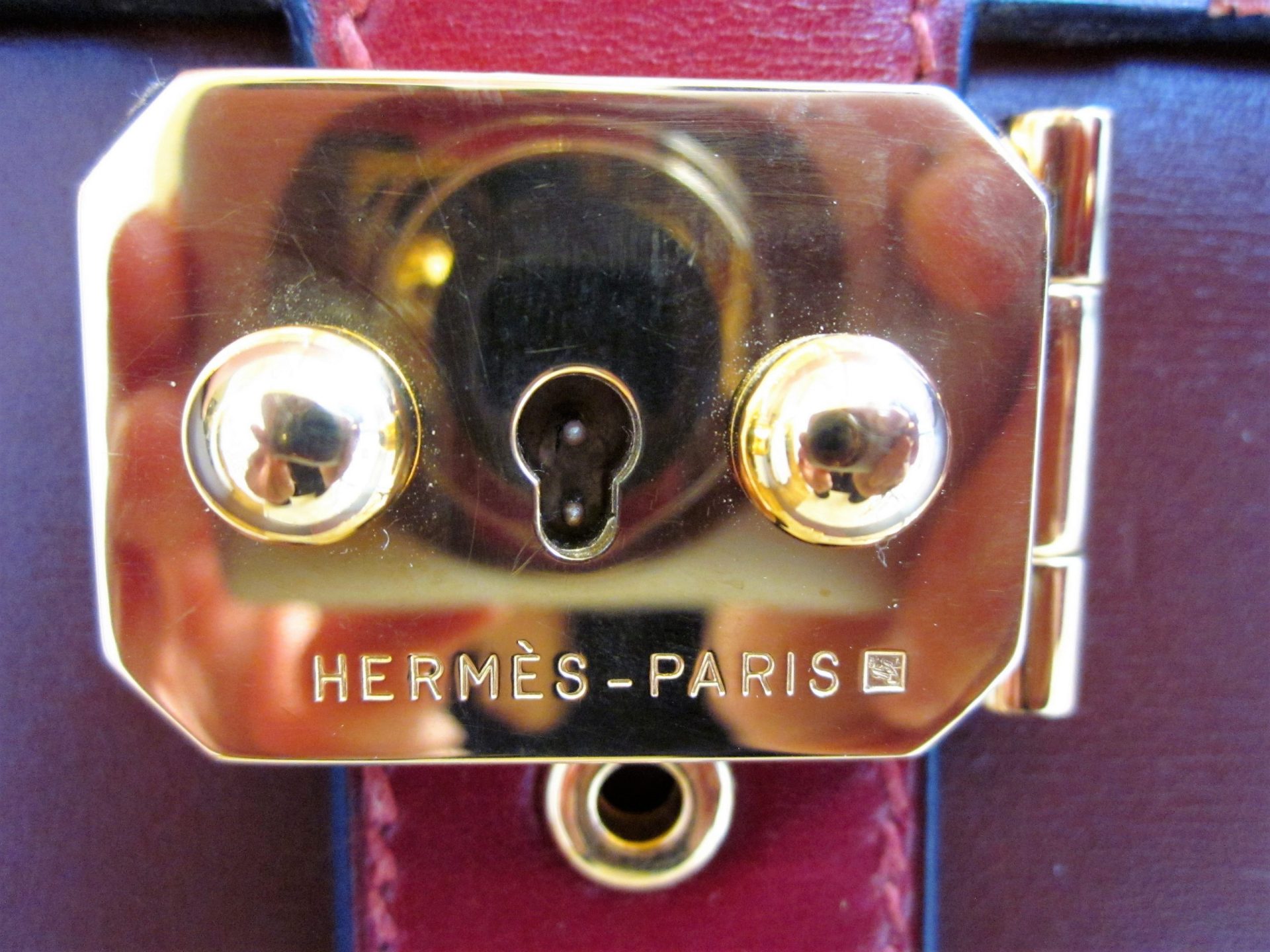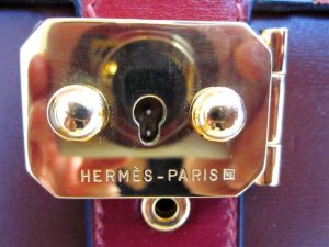 Hermès Sac à Depeche briefcase in box skin and GH from 1996. No key. 16″ x 2″ x 11½”.