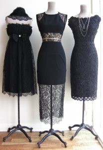 We love a good scallop, whether it’s on our plate or a hem, they’re both beautiful to us. This week we are feeling vampy with our black lace window, care to come over to the dark side for your next event?