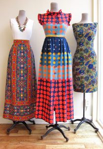 C~1970’s French cotton print dress, size 4 Sold. Schreiner belt.