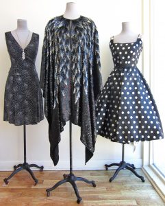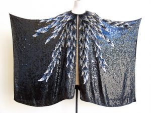 Here are some black with glittery silver options for you to bedazzle them in. Really bring the DRAMA wearing that centre 1970’s Halston sequin cape as you swoop into your next event. It’s hand beaded wing design is out of this world and truly worth dying for. And yes, it will fit you as it’s completely open and free like the soaring eagle that you’ll transform into suddenly once enrobed in it. See more pics of it’s gloriousness below↓