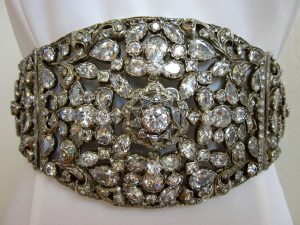 For a night out in white might I suggest one of these 3 beauts? Now let’s just cut to the chase and gaze at that AMAZING cubic zirconia belt! I don’t know much about it other than it came out of an estate in Montreal. Perhaps Persian? Being cubic zirconias, that would date it to post 1960’s. She may just need to sprout some lips in order to tell us the rest of her story.