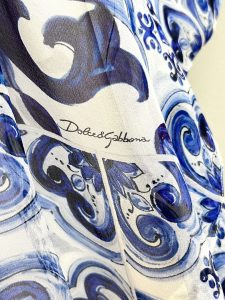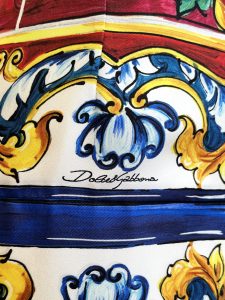 C~Dolce & Gabbana Majolica print silk column gown, size 8, $1,395.