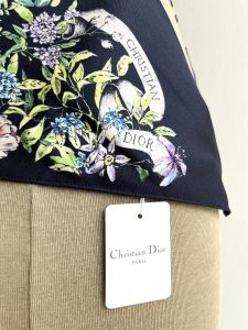 C~Christian Dior deep navy with floral print silk halter top, size S-L, $625 (new with tags). Christian Dior deep navy with floral print silk pajama style pants, size S-M, $895.