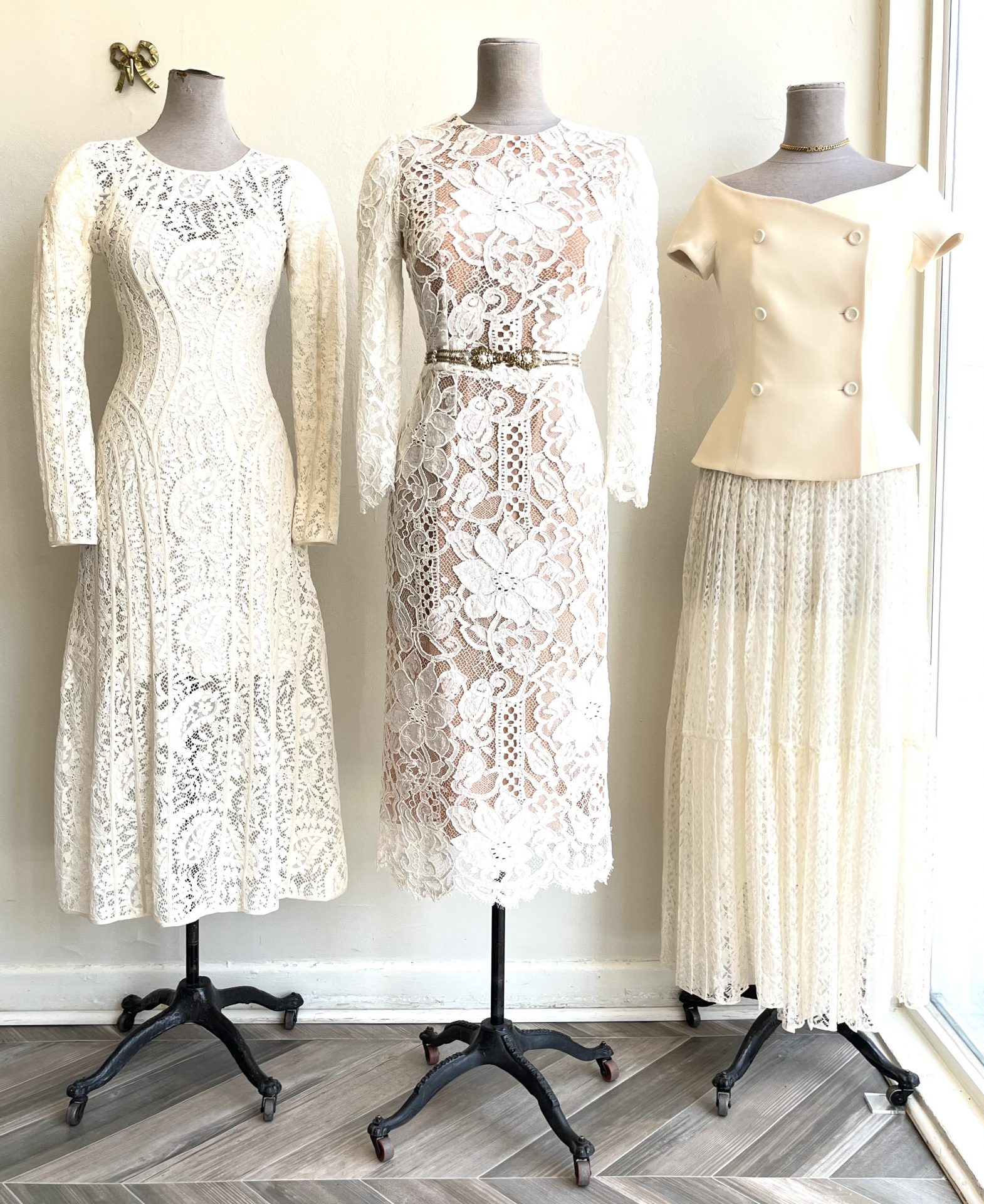 These lovely lace looks are demure, feminine and just so pretty! Why not be a rebel and fly in the face of fashion rules by wearing white after Labour Day?! Please note that we will be closed on Monday so c’mon by this weekend to see these beauts and all of our other new arrivals.