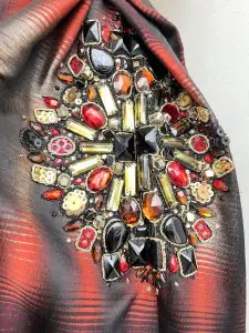 L~Carolina Herrera runway strapless dress with jewel encrusted pockets, size 6-8, $2,395. Two 1970’s crystal necklaces (doubled up), $195 each.