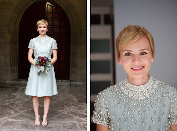 Emilia Wisniewski just sent us a nice email about her wedding dress that she purchased from us back in the late spring. Her 1960’s ice blue silk cocktail dress with bead and pearl encrusted bodice was a hit. She stated; ‘ I just wanted to thank you once again for the amazing service I received at your store and of course for the amazing dress!! I absolutely loved it!