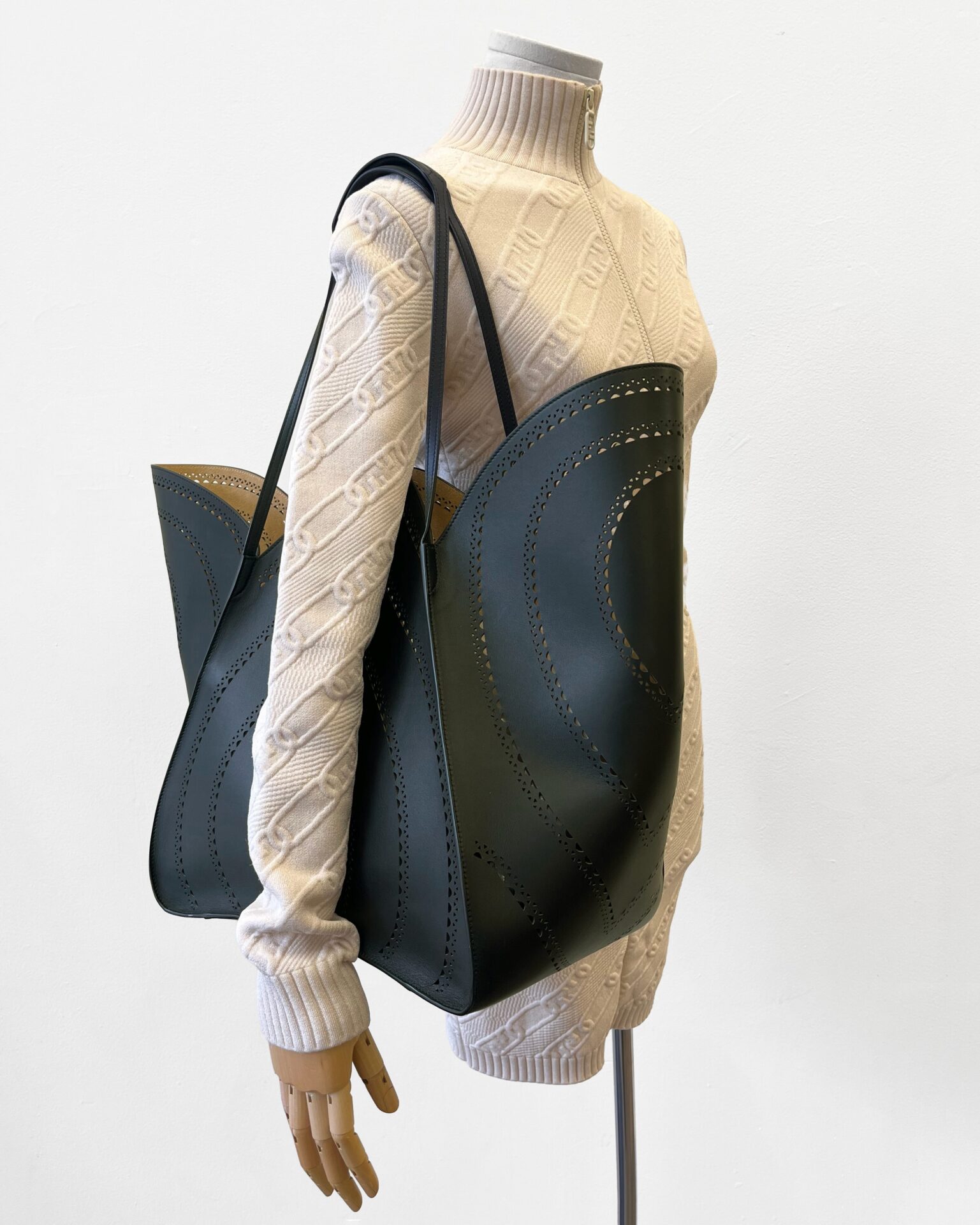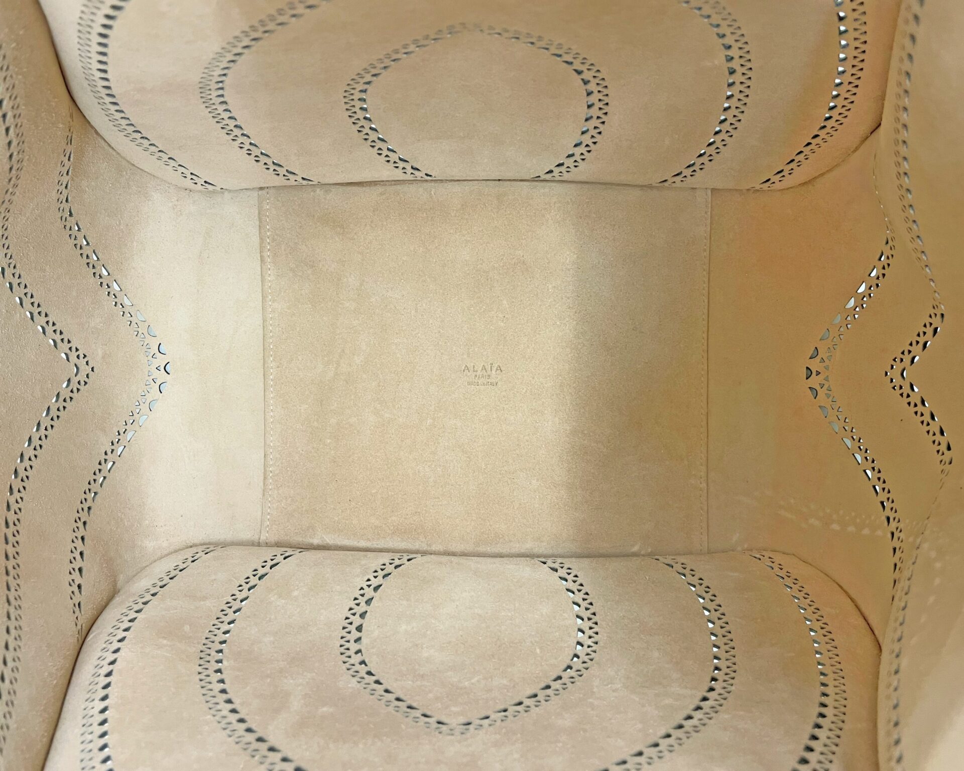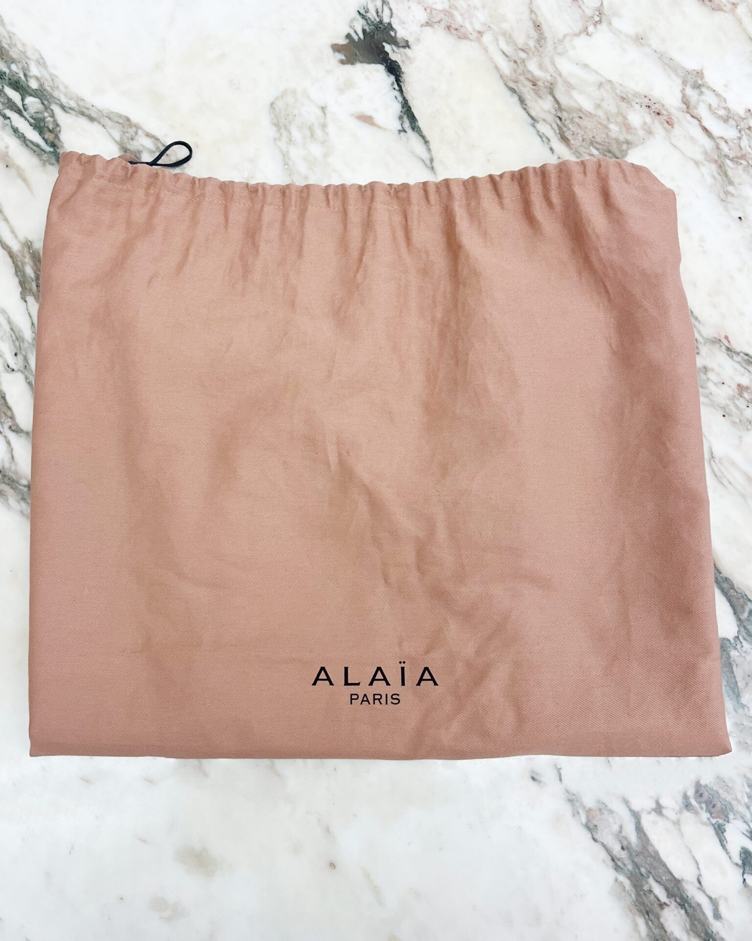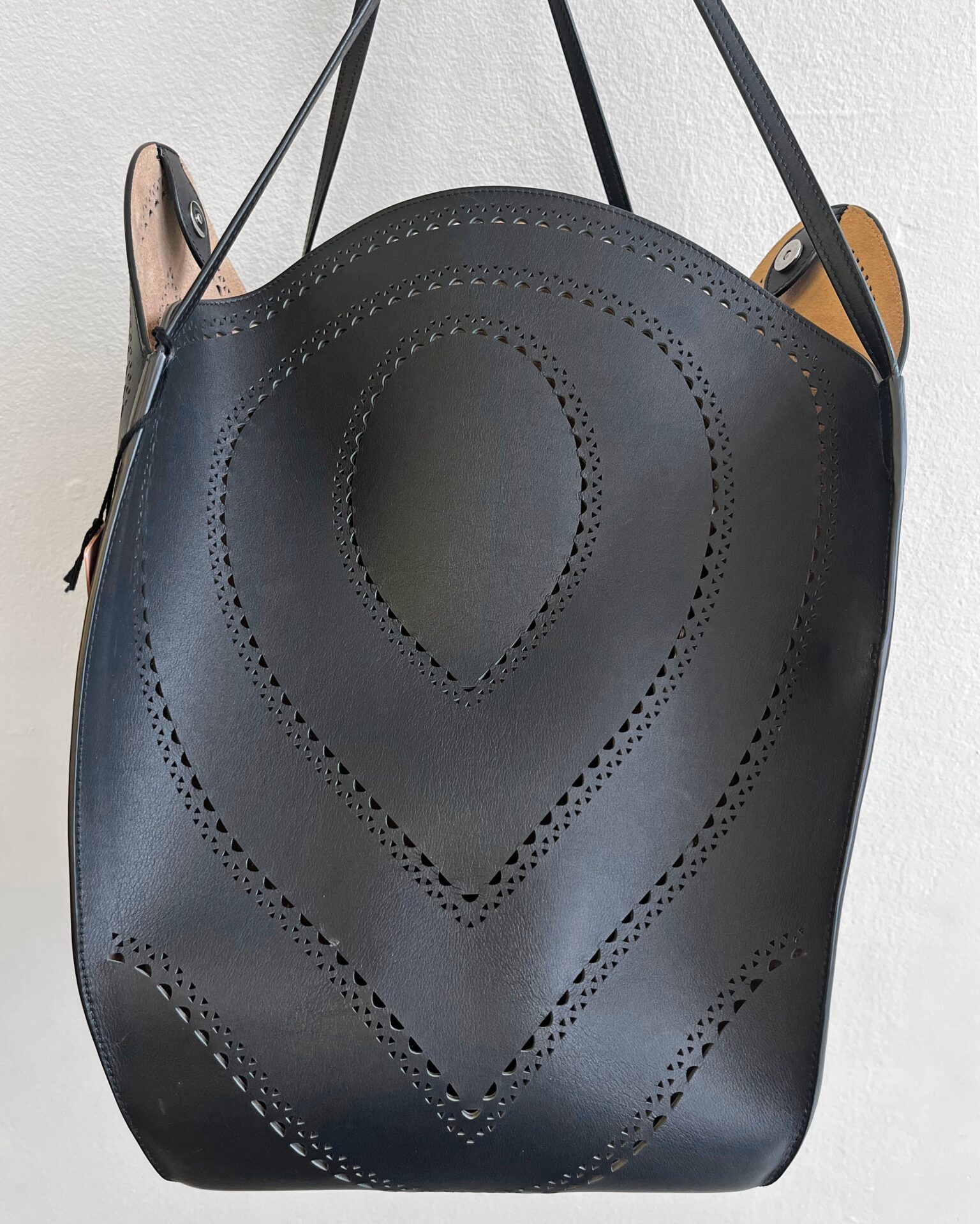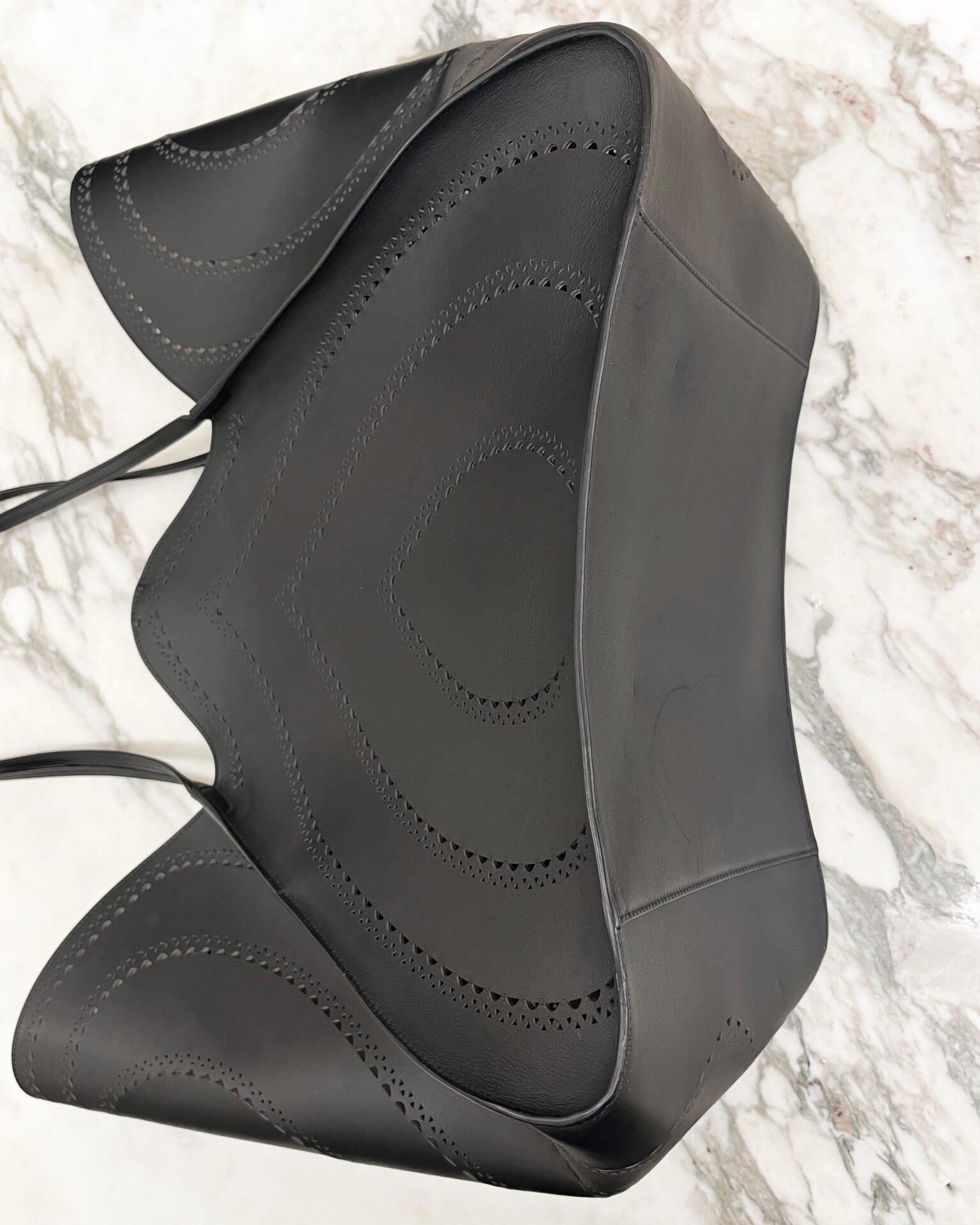Gorgeous Alaia Lili 32 black leather tote bag purse, featuring lazer cutouts and attached wallet. Includes dustbag.