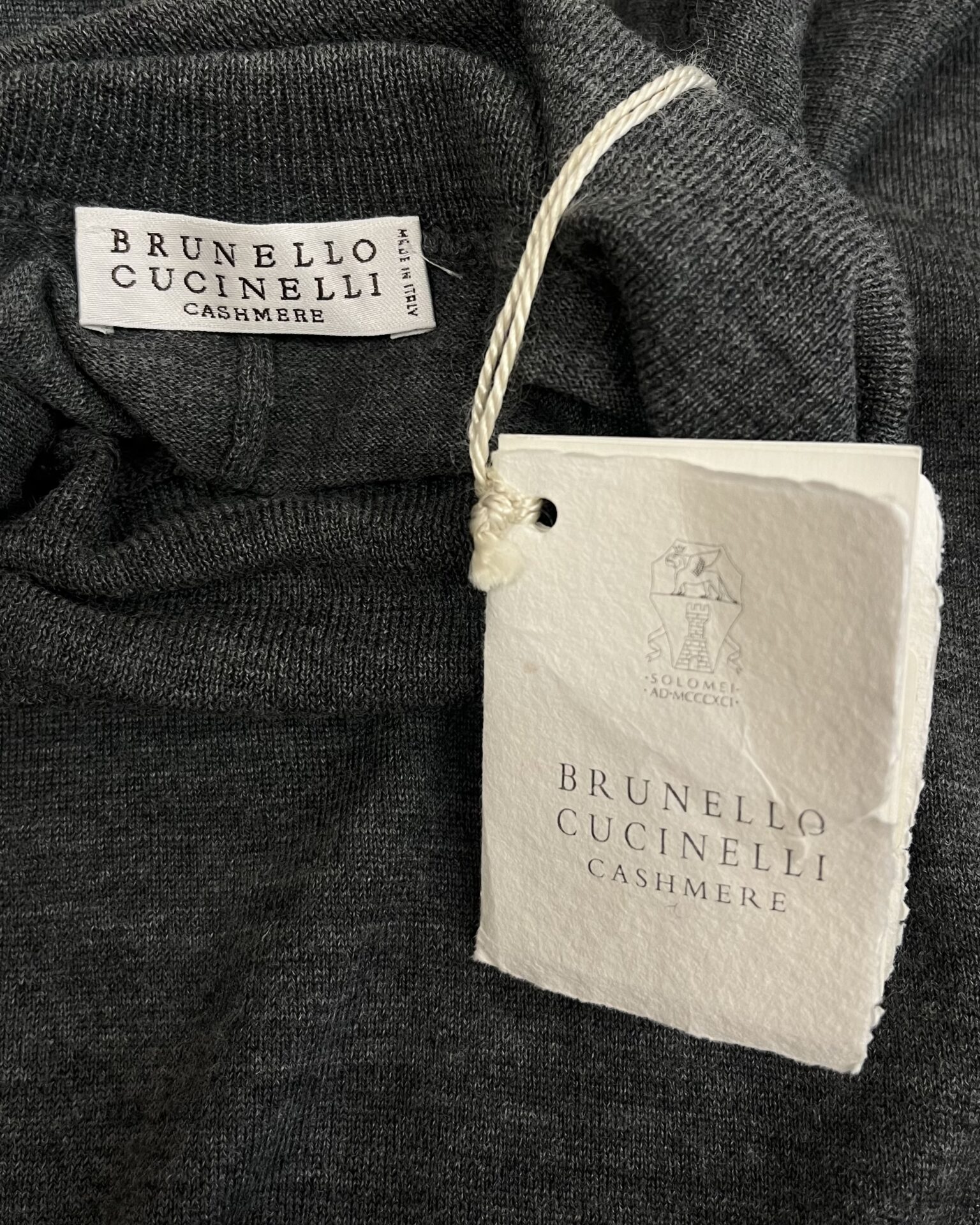 Oversized heather grey wool and cashmere blend tunic featuring monili beaded trim on the wrist cuffs, 3/4 length dolman sleeves and a cozy turtleneck.