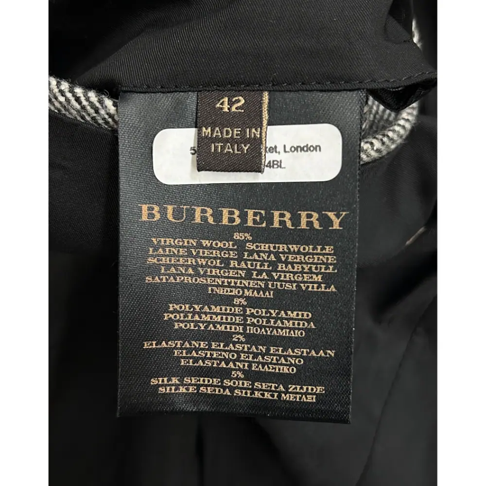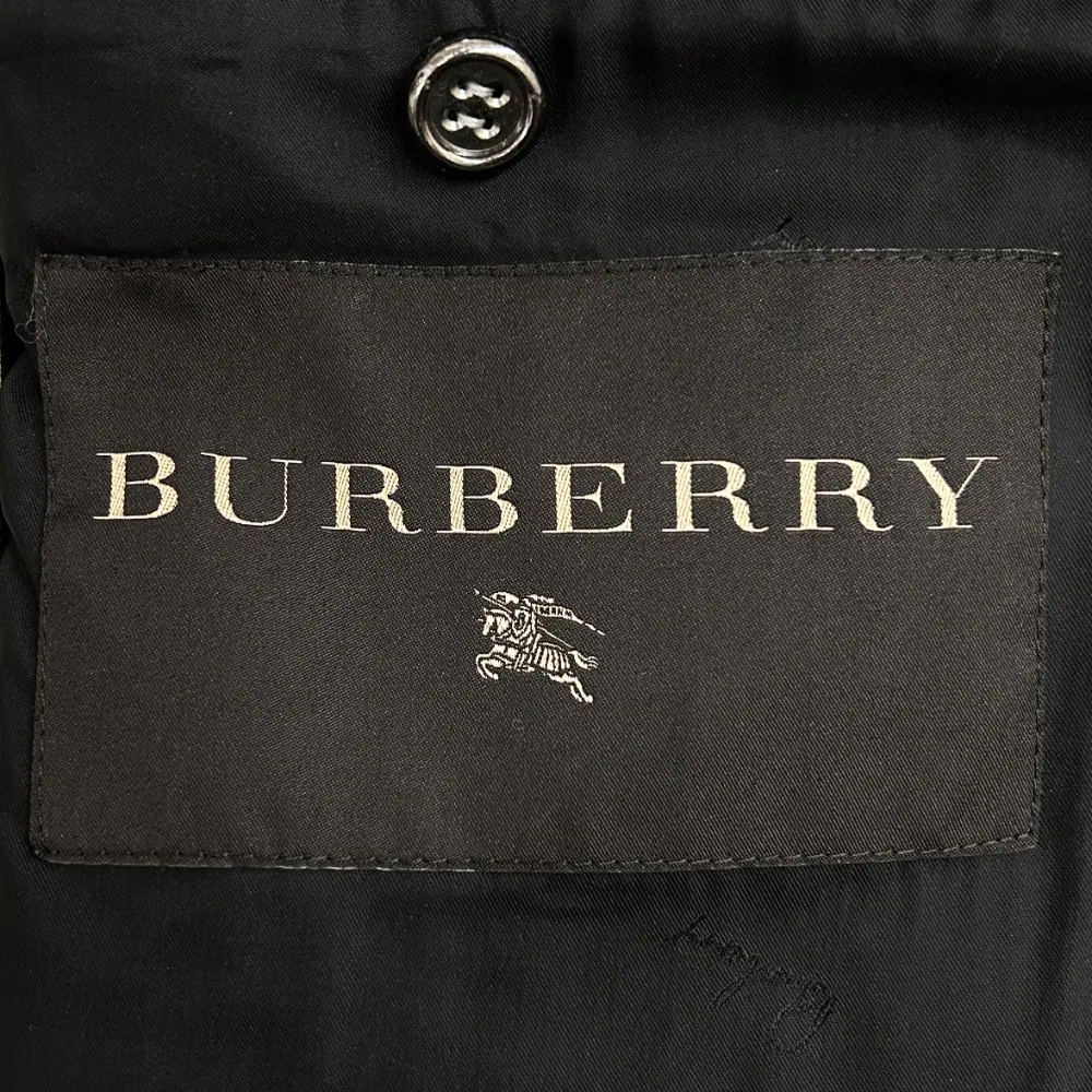 Grey wool twill coat with a doubled breasted front with dark silver metal buttons. It has long straight sleeves, a back gusset and vent, and large side pockets. It is fully lined in black logo print fabric. See label image for full material content. Condition: Purrrfect. No flaws.