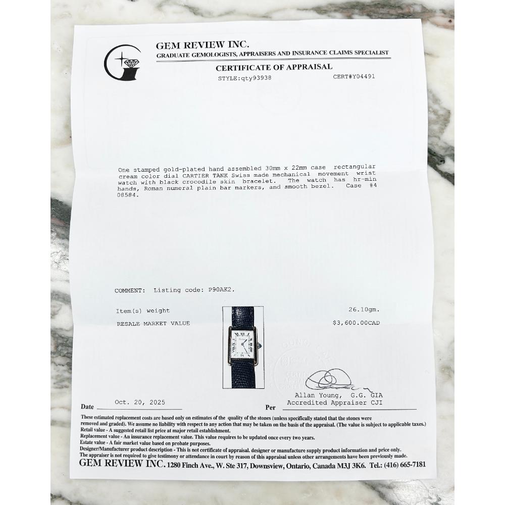 Cartier 1980’s gold plated Tank watch with two straps