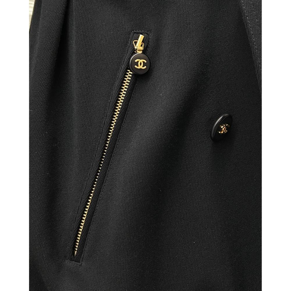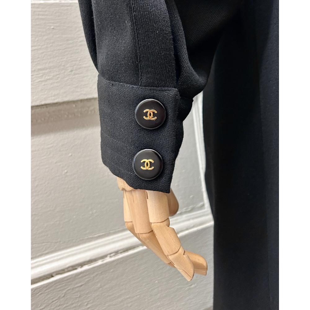 Chanel 1990’s black wool jersey trench coat ~ Size 14/16
