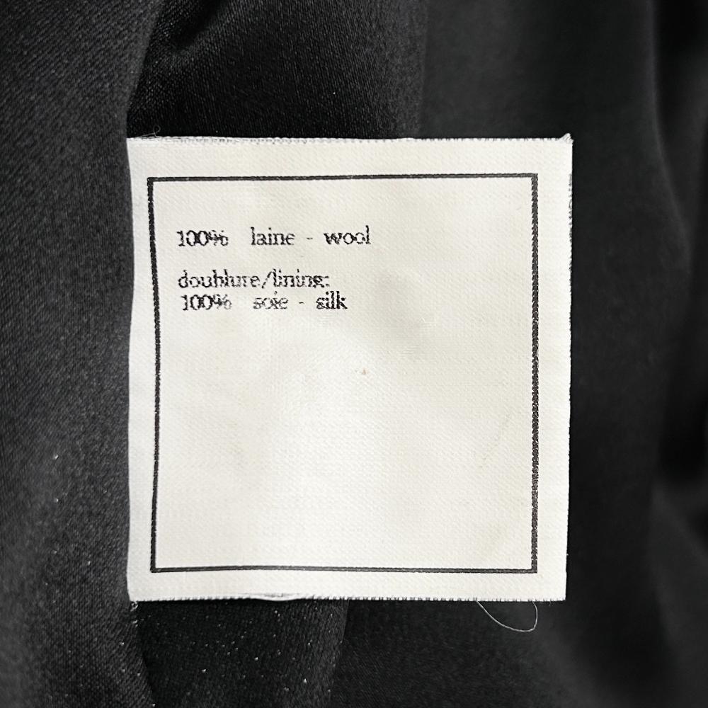 Black wool trench coat with long cuffed sleeves, logo buttons, zippered side pockets, buttoned back hem vent, and a waist belt. The jacket is lined in logo print silk. See label image for material content. Condition: Vintage purrrfection. No flaws. No size label attached.