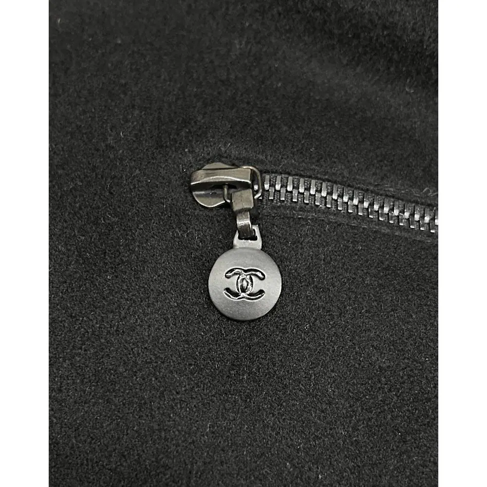 Vintage black felted cashmere jacket, with zipper details, removable rabbit fur cuffs and collar, and a snap button down front. The inside of the jacket is lined in black silk. See label for material content. Condition: Purrrfect, no flaws.