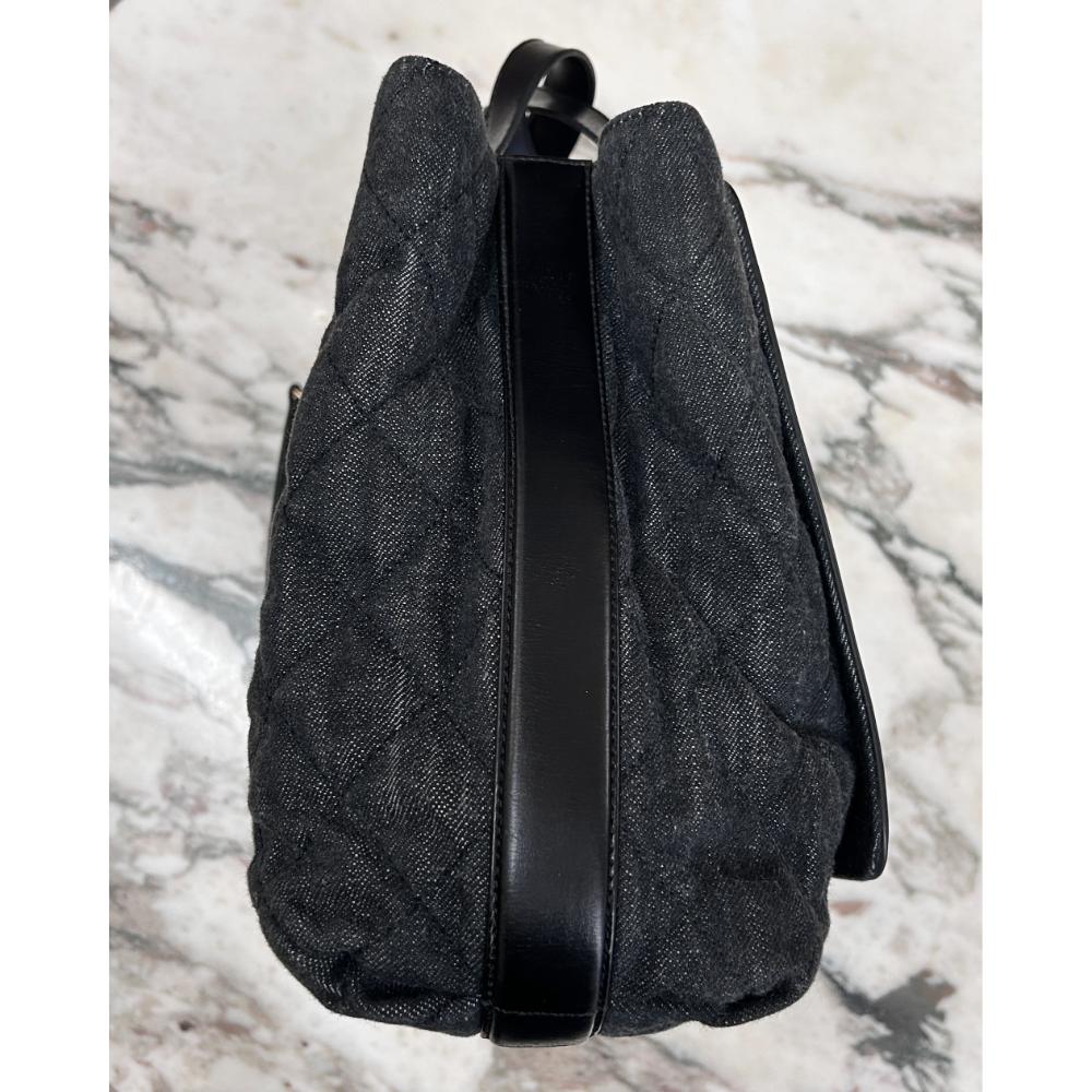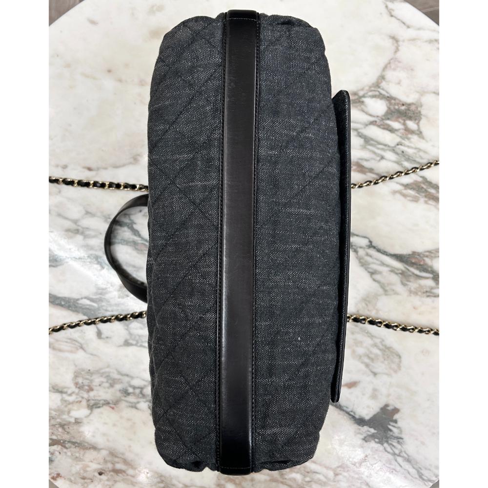 Chanel 2017 black quilted denim & leather tote bag