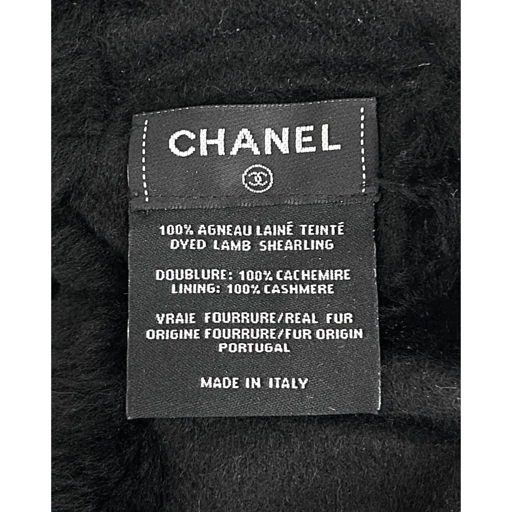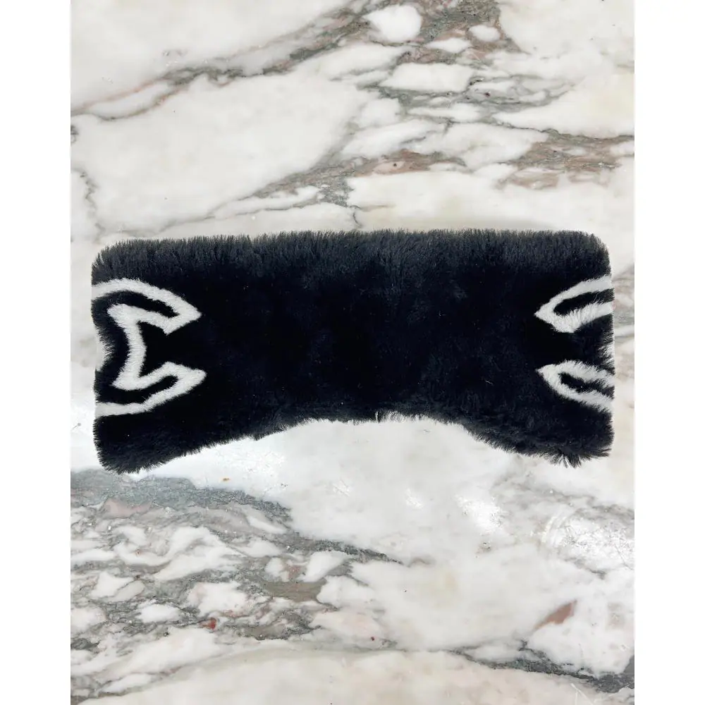 Black lamp shearling headband, with a white CC logo on both sides. Lined in cashmere, this headband is warm and cozy and will keep your ears warm in cold weather. There is a bit of elastic inside to help it comfortably fit multiple head sizes. The inner circumference is 23″ – 24.5″, as the elastic allows it to stretch slightly. The width of the headband is 4.5″ at the widest point. Condition: Purrrfect. No flaws.