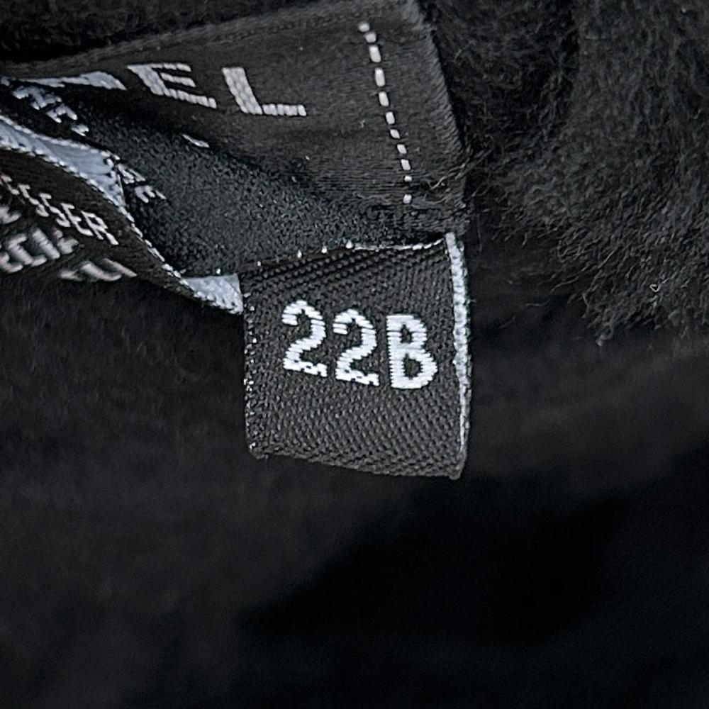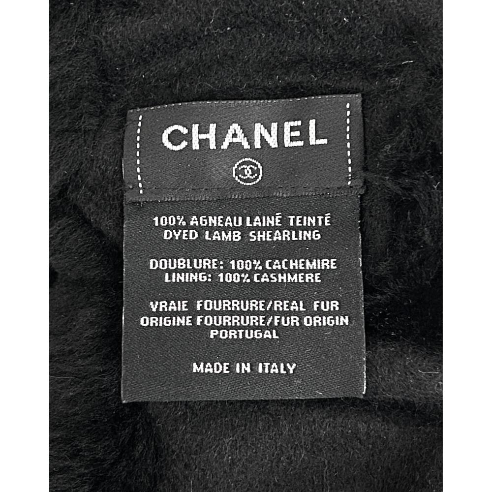 Black lamp shearling headband, with a white CC logo on both sides. Lined in cashmere, this headband is warm and cozy and will keep your ears warm in cold weather. There is a bit of elastic inside to help it comfortably fit multiple head sizes. The inner circumference is 23″ – 24.5″, as the elastic allows it to stretch slightly. The width of the headband is 4.5″ at the widest point. Condition: Purrrfect. No flaws.