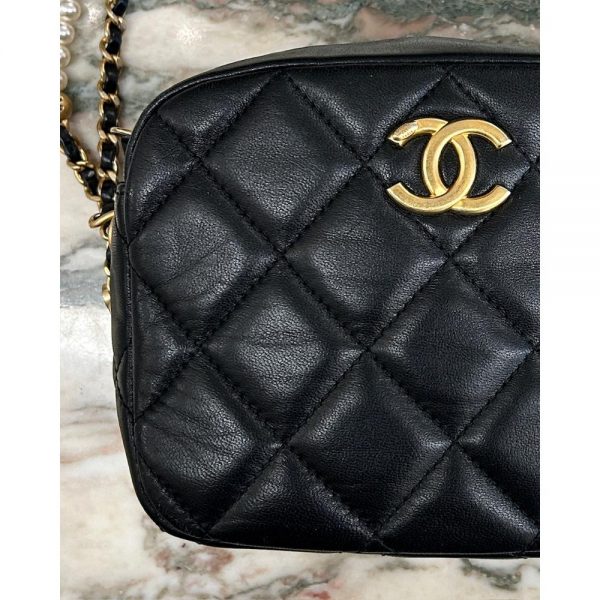 Chanel 2021 My Perfect Pearls small black leather camera bag