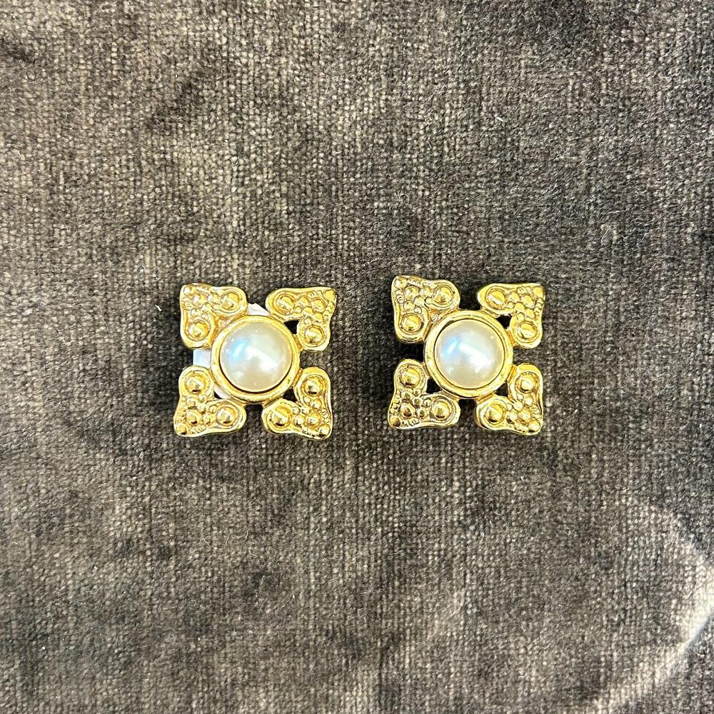 Chanel Maltese cross button earrings w/ pearl center – for Sharon