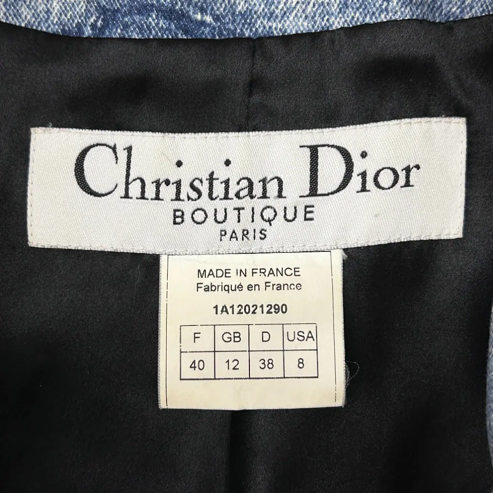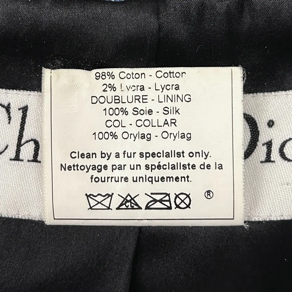 Dior 2001 by John Galliano printed denim jacket with an asymmetrical rabbit fur collar. The jacket is double breasted and fully lined in silk. See label image for material content. Condition: Vintage purrrfection. No flaws.