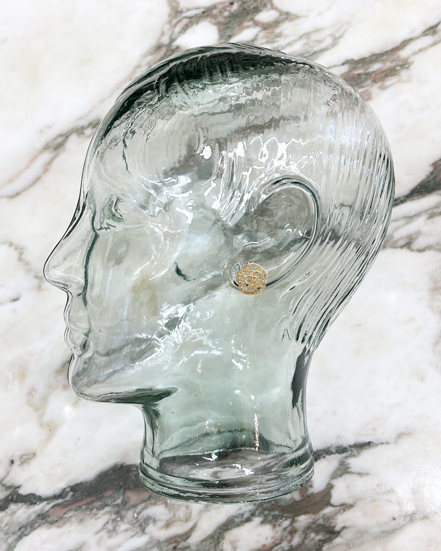 Gold tone metal flower stud earrings with clear crystals. Come with original protective pouch.