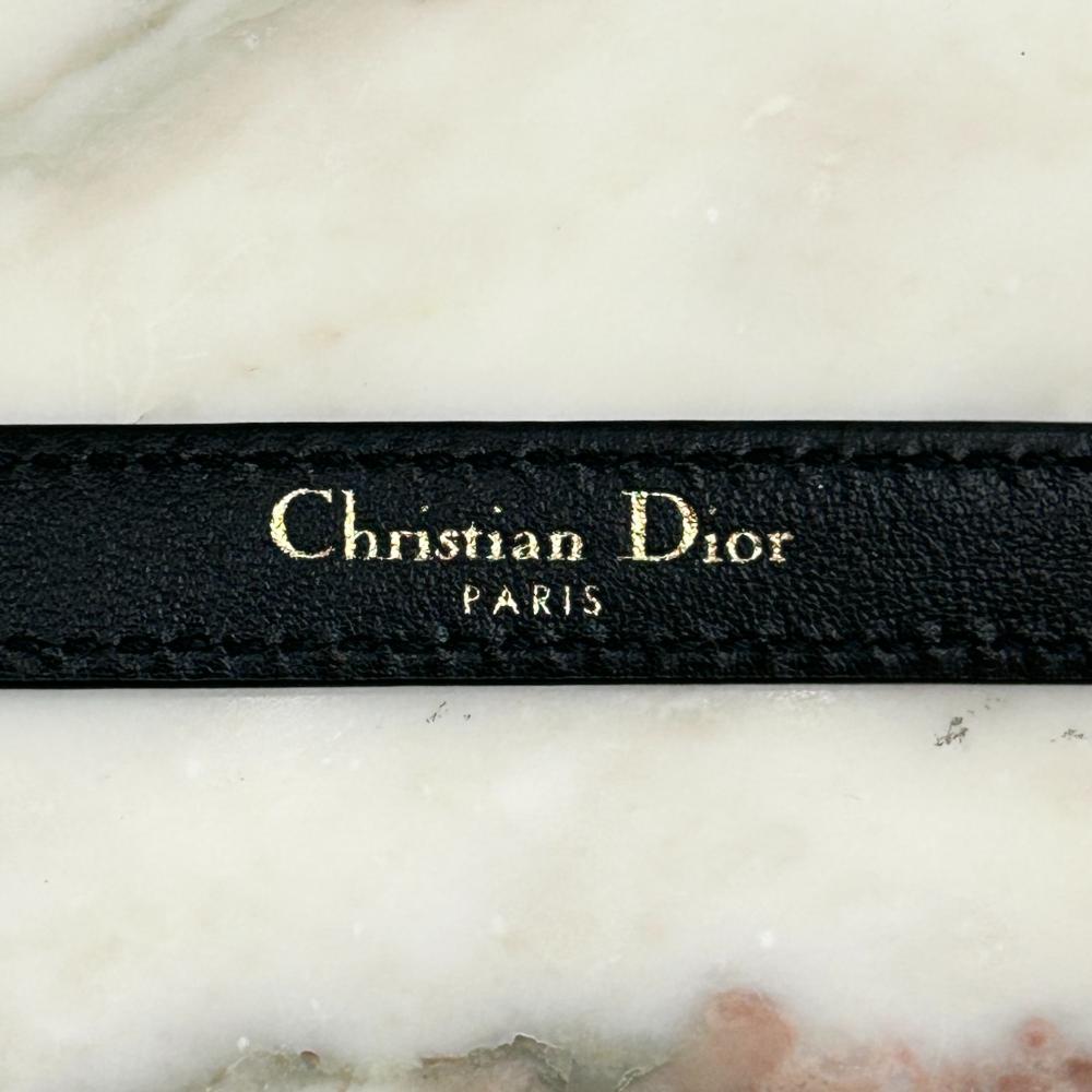 Dior Dior-ID thin black leather belt with gold & black buckle