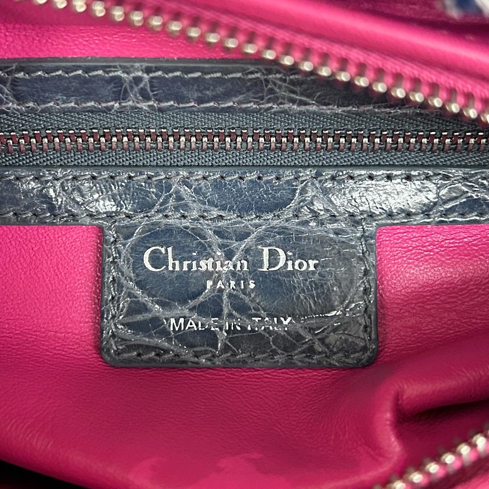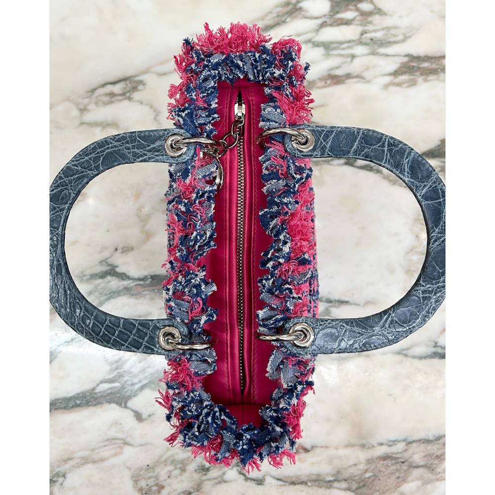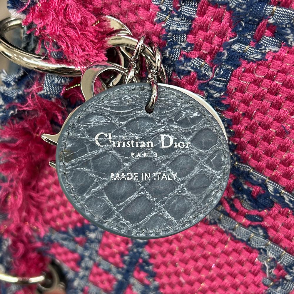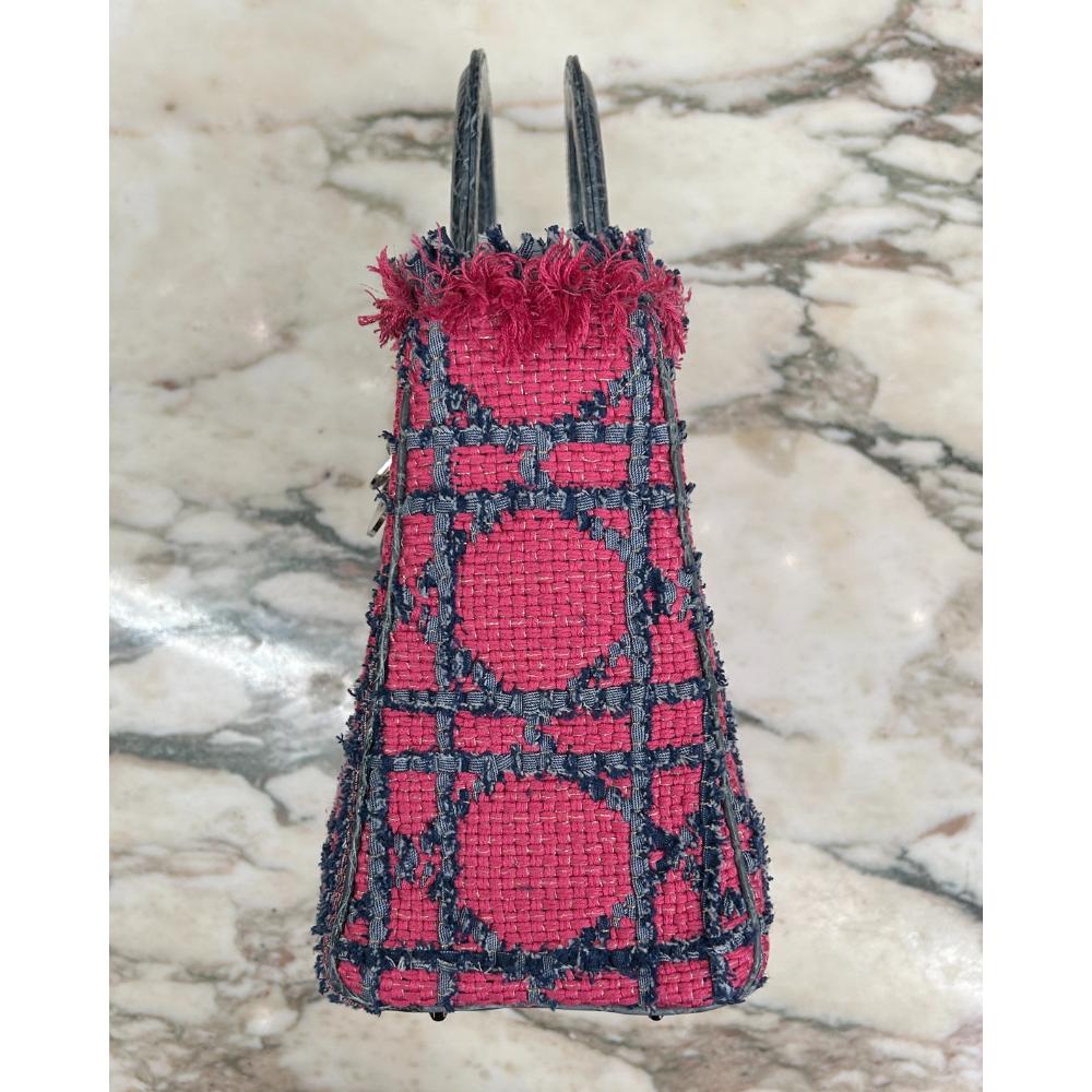 Dior Medium Lady Dior pink Cannage tweed bag w/ crocodile trim