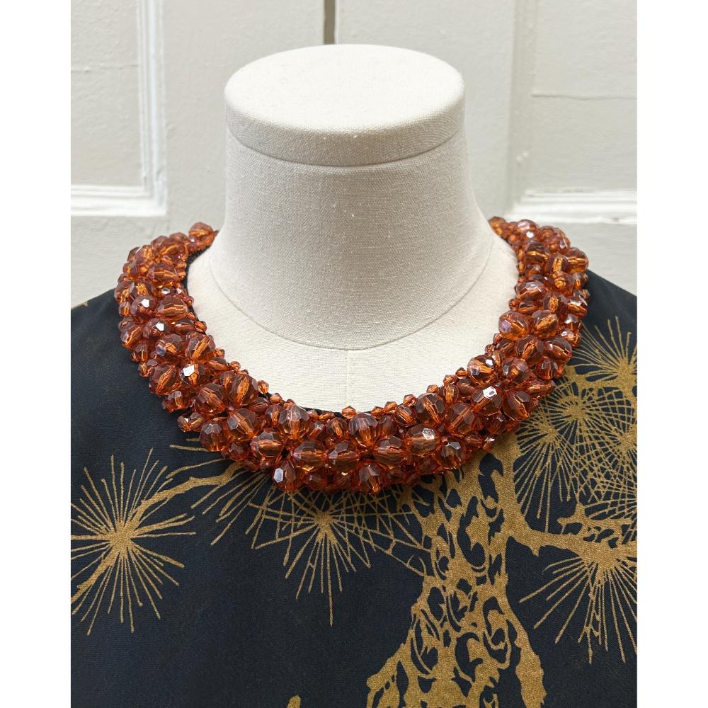 Dries Van Noten geometric print dress with beaded collar ~ Size 4/6