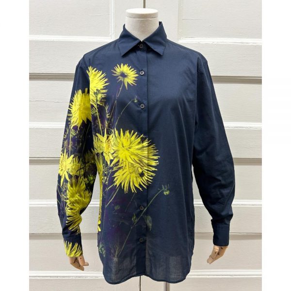 Dries Van Noten navy & floral print cotton shirt ~ Size 2/4