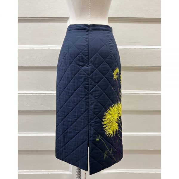 Dries Van Noten navy quilted skirt with floral print ~ Size 4
