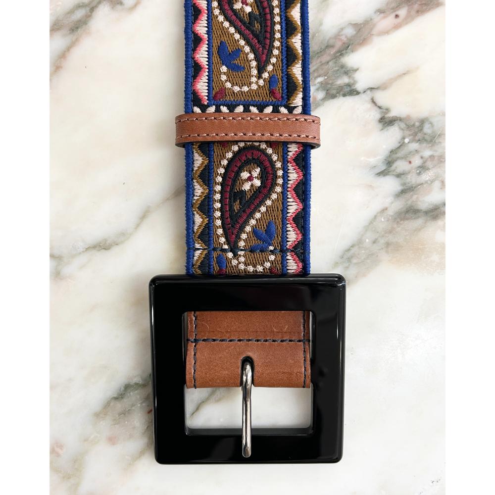 Etro embroidered belt with large square buckle