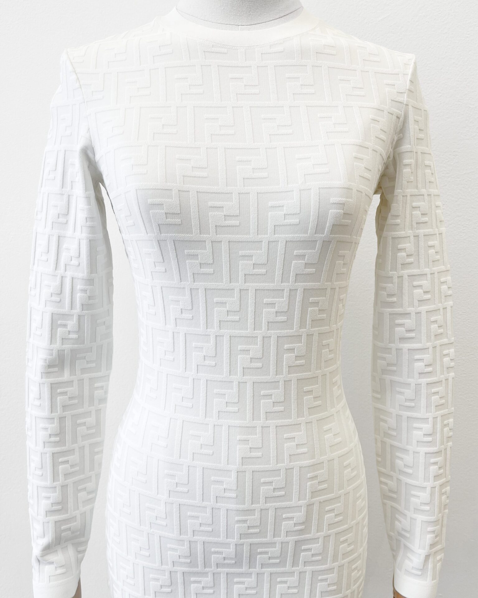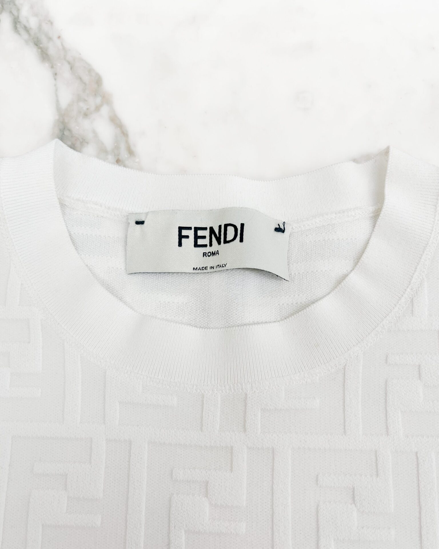 Made from stretch FF zucca monogram textured knit in a white. See label pic for material content.