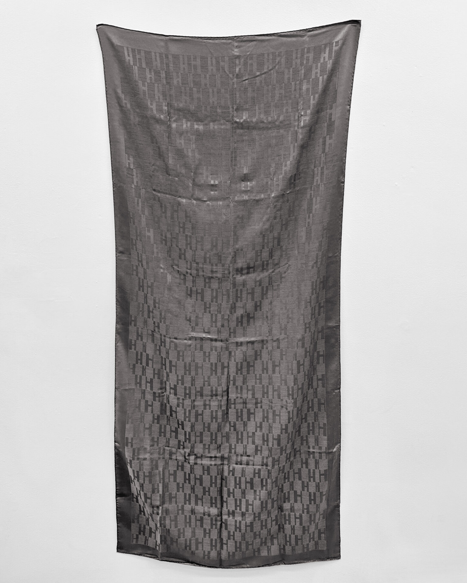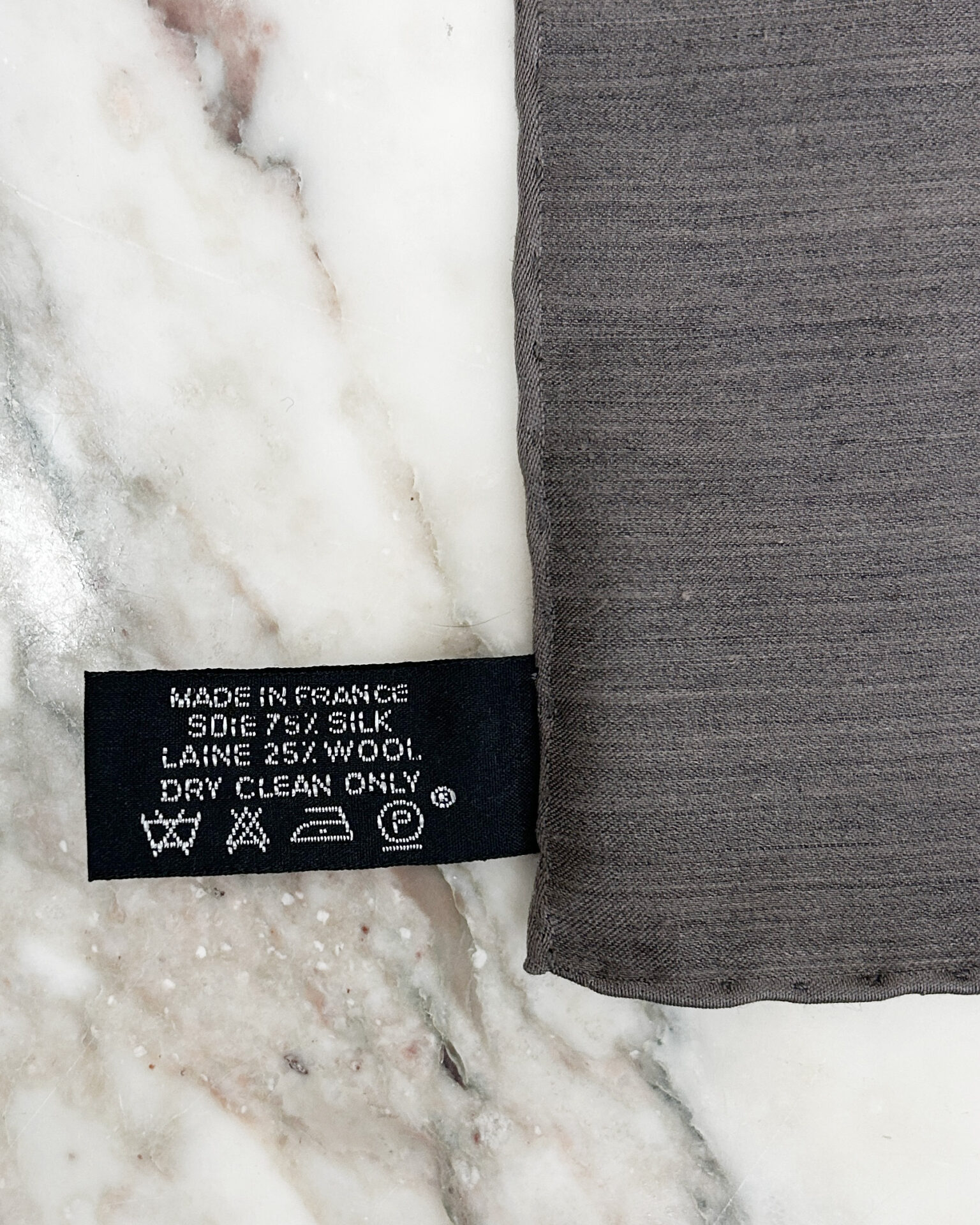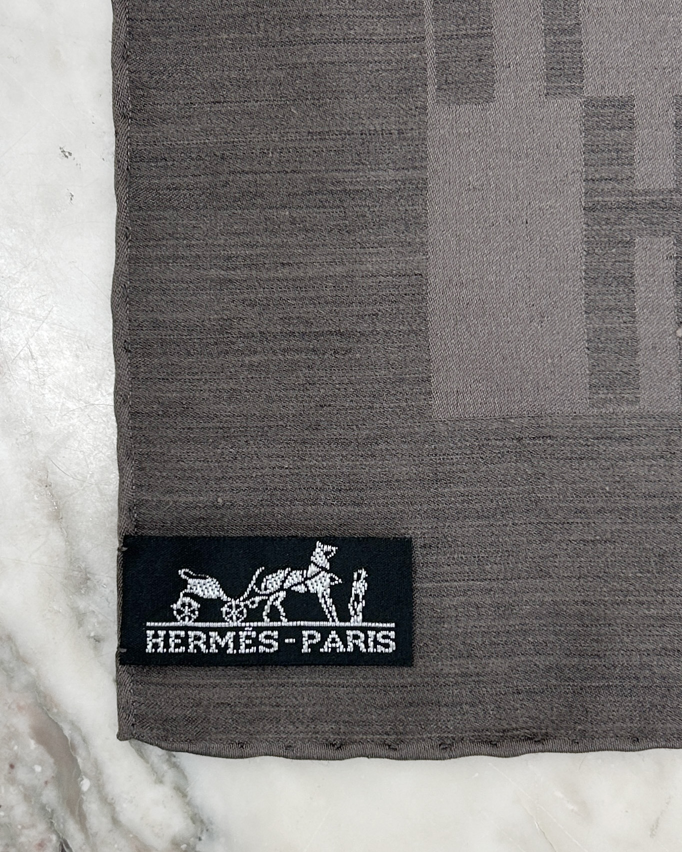 Large woven silk and wool scarf/wrap with H pattern. Taupe grey colour. Comes with Hermès box.