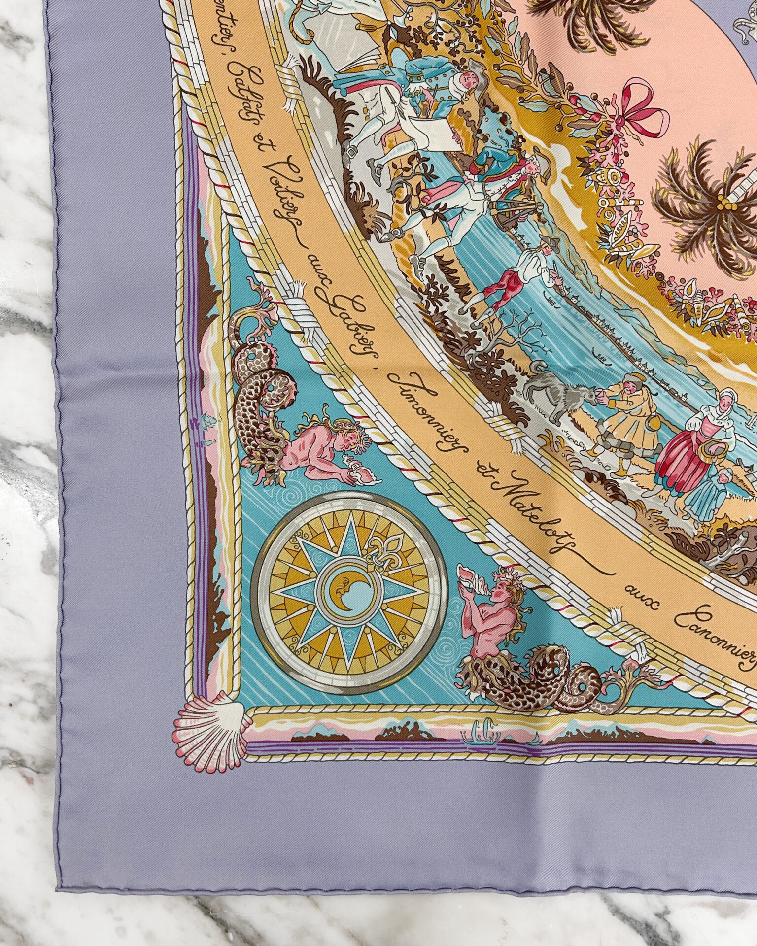 Multicolour pastel scarf with a detailed pattern. Made from 100% silk. Comes with Hermès box.